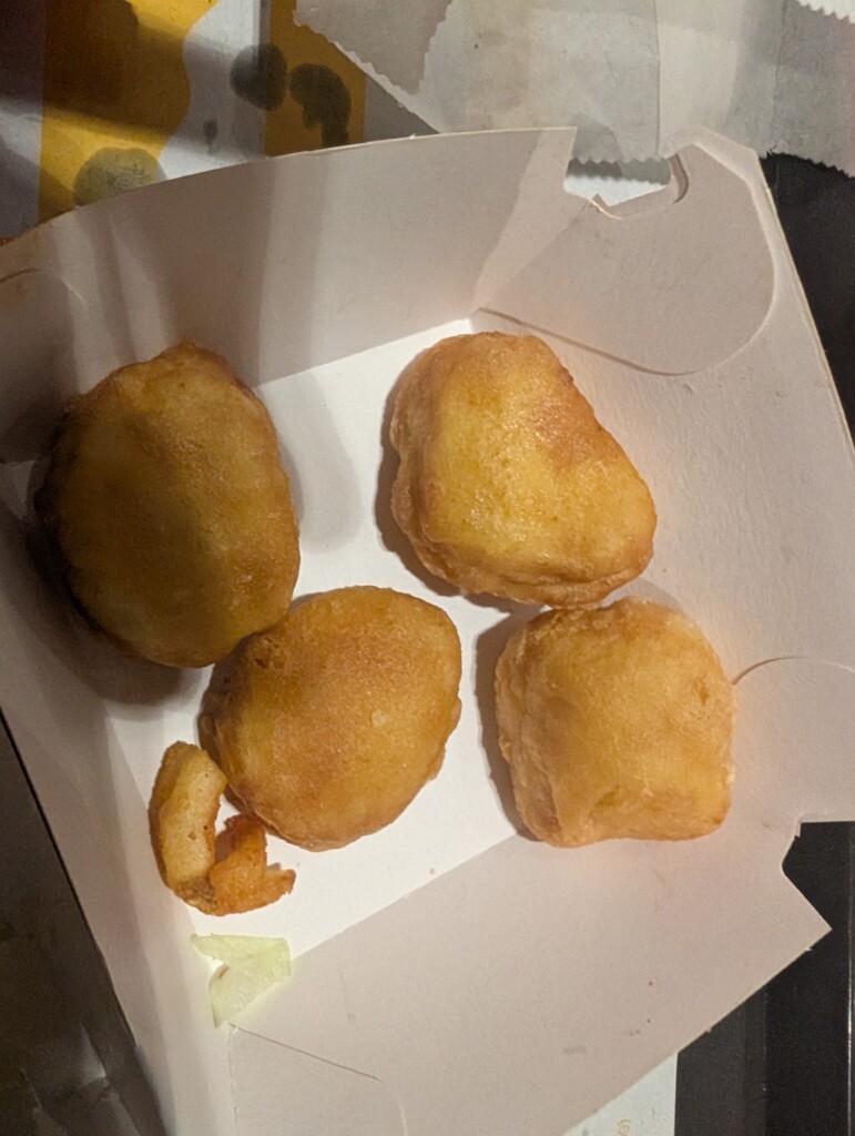 Rylee is always hungry so she also had a McRoyal deluxe burger that had pickles, mayonnaise, cheese, tomato and shredded lettuce. When I asked Rylee what she thought about it she said “it was good, it had pickles on it”. My dad had a big mac with the seasonal twister fries. We all shared chicken nuggets that were supposed to be shaped like stars and hearts (although they did not look very much like stars and hearts).