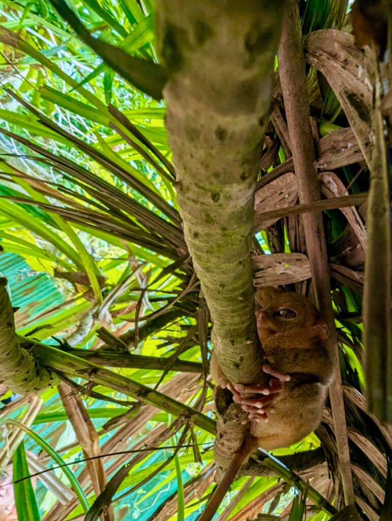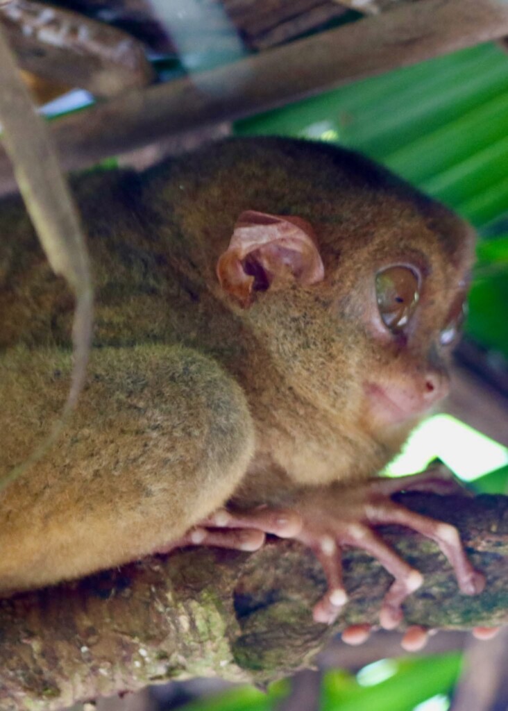 We arrived at the tarsier sanctuary at 9:00am which was the best time to see them because the guides know where to find them in the morning. Our guide led us through a half hour nature walk where we saw the tarsiers very well. I knew they would be small but I was amazed at just how tiny they really as pictures make them look so much bigger. It was adorable how big their eyes were for such a small animal. One that our guide pointed out was so curled up that we thought is was a coconut until it moved slightly. Our guide informed us that at night the tarsiers leave the sanctuary to hunt but they come back in time for the morning because it is safer.