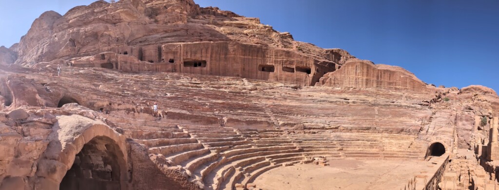 After that we headed to the Petra theater. The theater was built in the early first century AD. Scientist’s believe the theater held theatrical and musical performances, poetry readings, athletic matches, and public meetings. The theater could hold up to 6,000 people! The theater was one big block of rock until they hand carved it out with no machines! Theaters were known to hold a quarter of the population so that means the population of Petra was about 24,000 people.