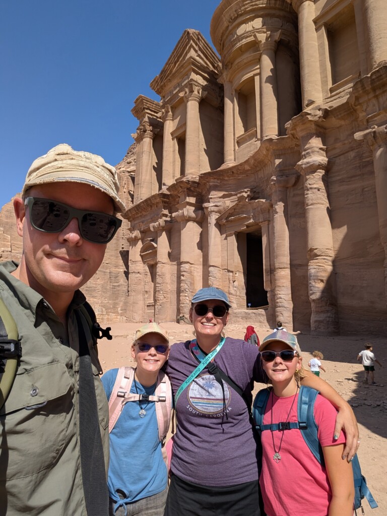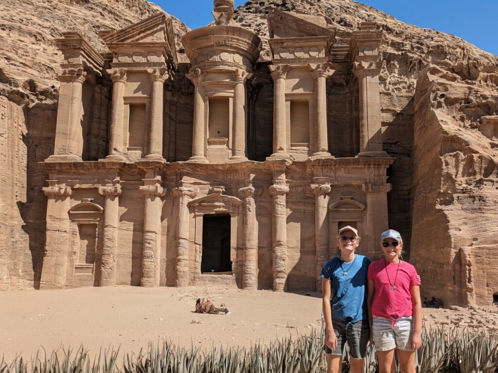 Next, we headed to the Monastary, also known as Ad-Dayr in Arabic. There are 800 steep steps leading up to the Monastary, so I was happy that my parents got us donkey’s to go up! We asked if our donkeys had a name and my donkey was called Zuzu and Brooklyn’s was Monica Lewinsky and they were both males. Our mom and dad got a mule. Sadly, are parents did not ask what their mules names were. Riding the donkeys was awesome! I loved it so much! I didn’t even get a person to guide my donkey so I got to steer. The donkeys mostly had the path memorized but they still wondered off track. By pulling on the reigns, I could steer the donkey to where I needed him to go.