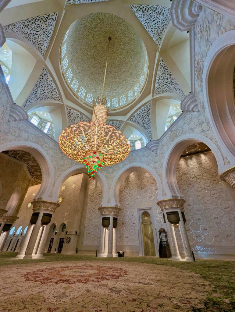 - The main prayer hall homes the world’s largest hand knotted carpet