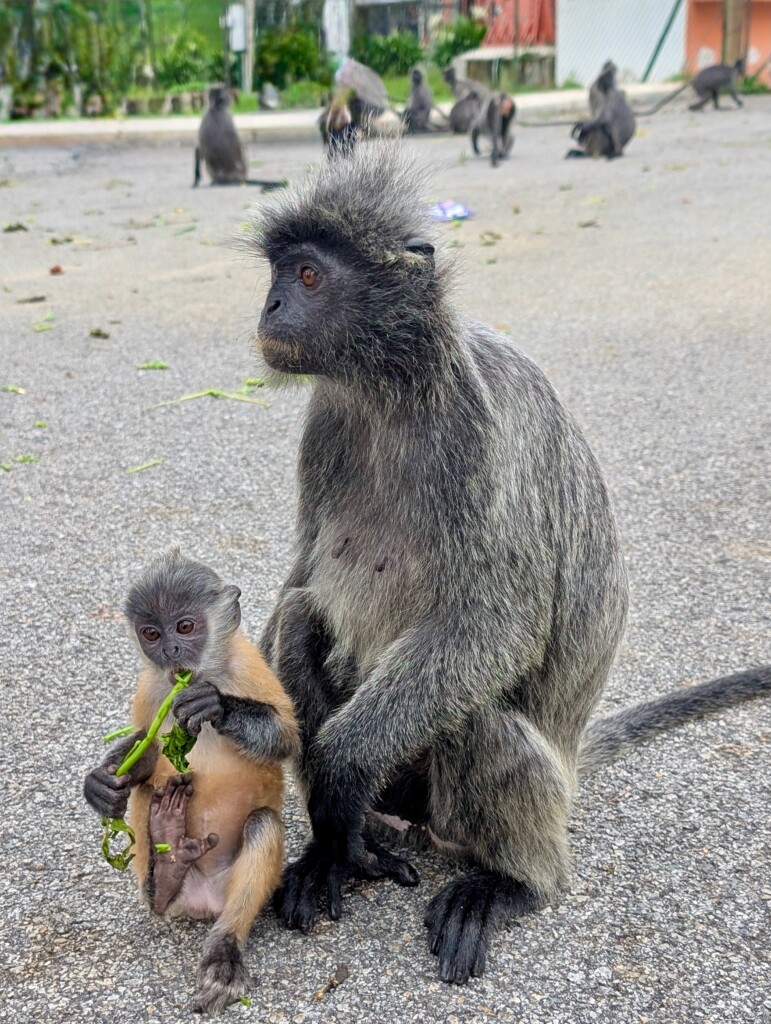 The hill had so many wild monkeys! People were selling monkey food, so we decided that we would try feeding them. The monkeys were greedy and kept jumping on us. There were also lots of baby monkeys clinging to their mothers.