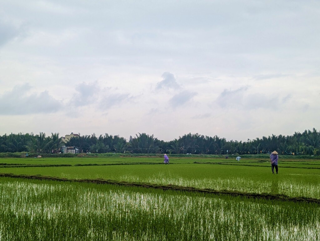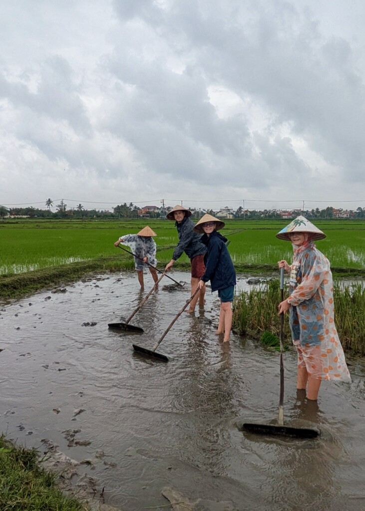Rain pattered on the metal roof “tap tap tap”, I knew that we were going to get completely soaked during the tour that we were scheduled for this morning. After quickly eating and getting ready for the day we met our tour guide outside, she had brought bikes with her. Our tour guide also provided a poncho and water bottle but we had our own rain jacket already. As we began our bike ride I quickly realized that I should have worn the poncho that went down to my knees because my shorts were so wet they were clinging to my legs. Biking in Vietnam was chaotic, there were hardly any bike paths so we had to bike along the street with motorcycles zipping past us.