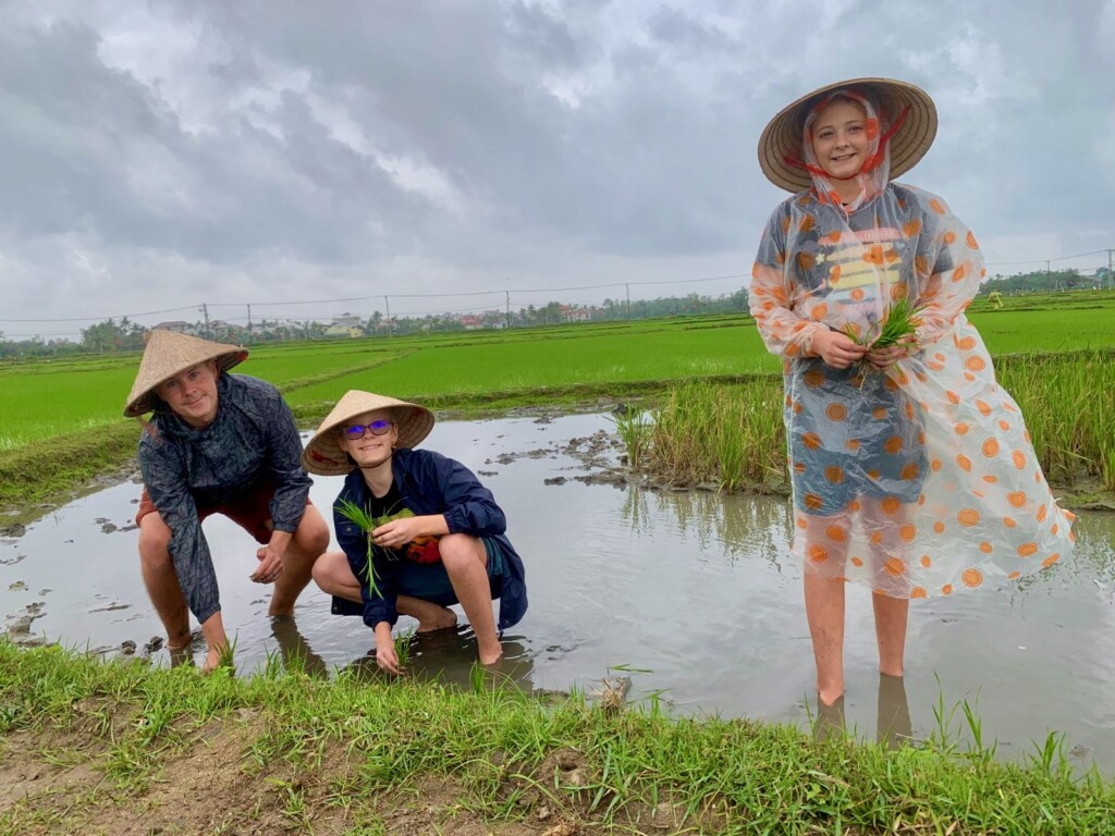 Our first stop was at a rice field, including a ride on a water buffalo! To really experience what local farmers do in their everyday life we took a ride on a water buffalo. Local farmers ride water buffalos in everyday life to transport crops and to get around the fields. Water buffalos are a symbol of hard work and strength in Vietnamese culture. It was a little bit scary because the water buffalo did not even have a saddle to hold on to so we just had to balance ourselves.